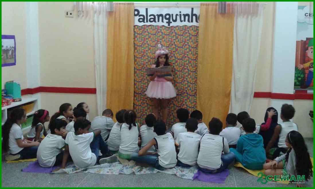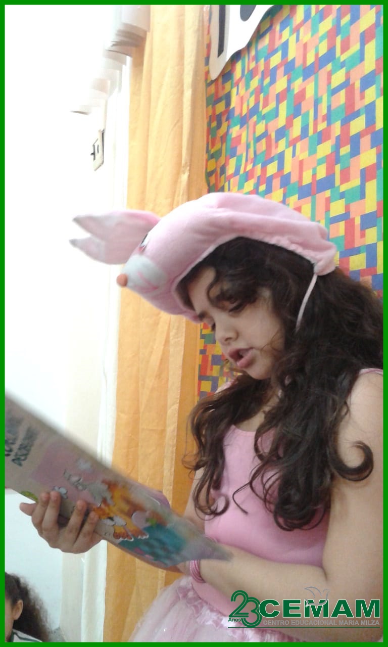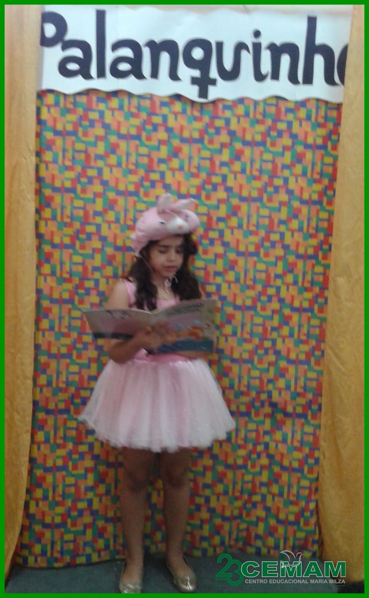 A estudante Kamilla se vestiu de Dona Coelha, para nos contar a história de Maneco, seu filho coelho muito desobediente.