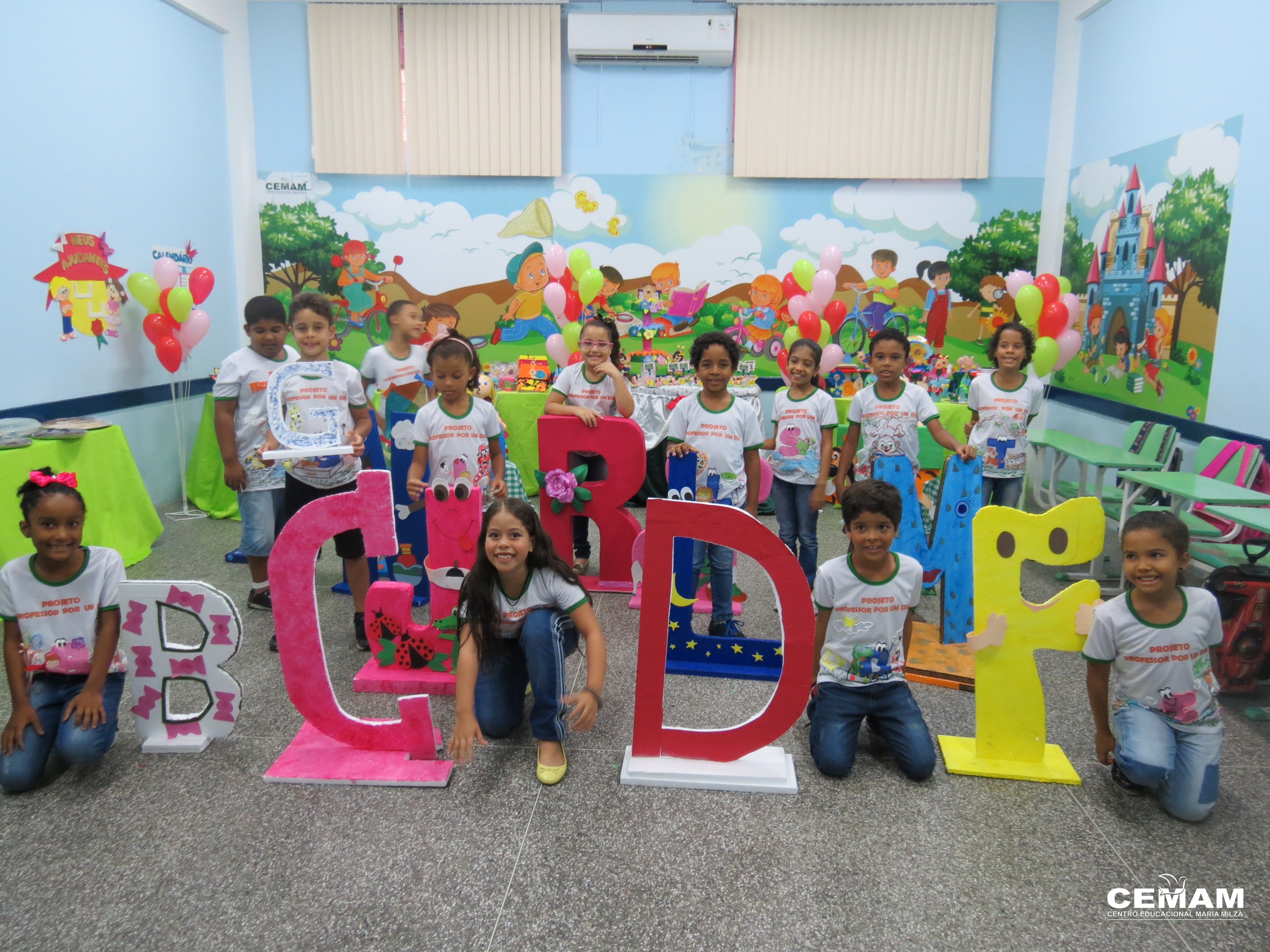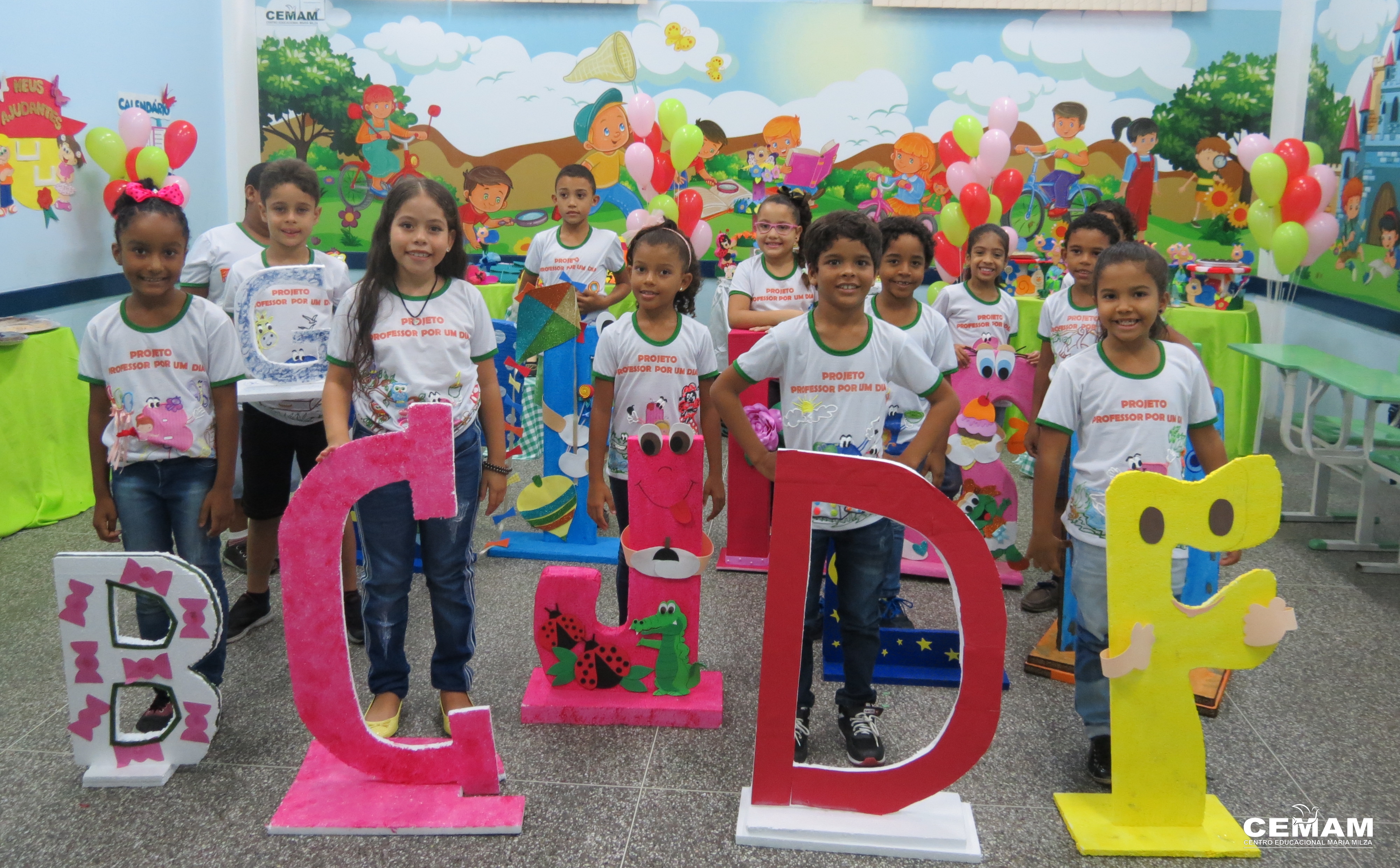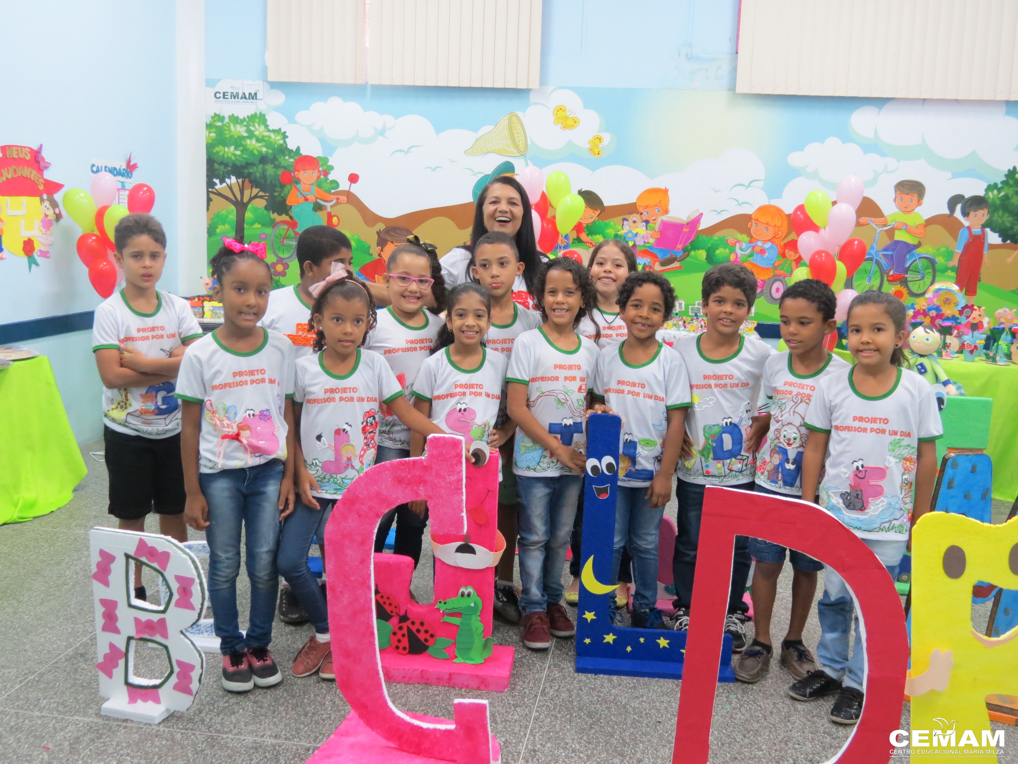 Na culminância do Projeto Professor Por Um dia, os estudantes do 1º ano participaram da festa das letras, momento de relembrar a experiência prazerosa de ser professor.