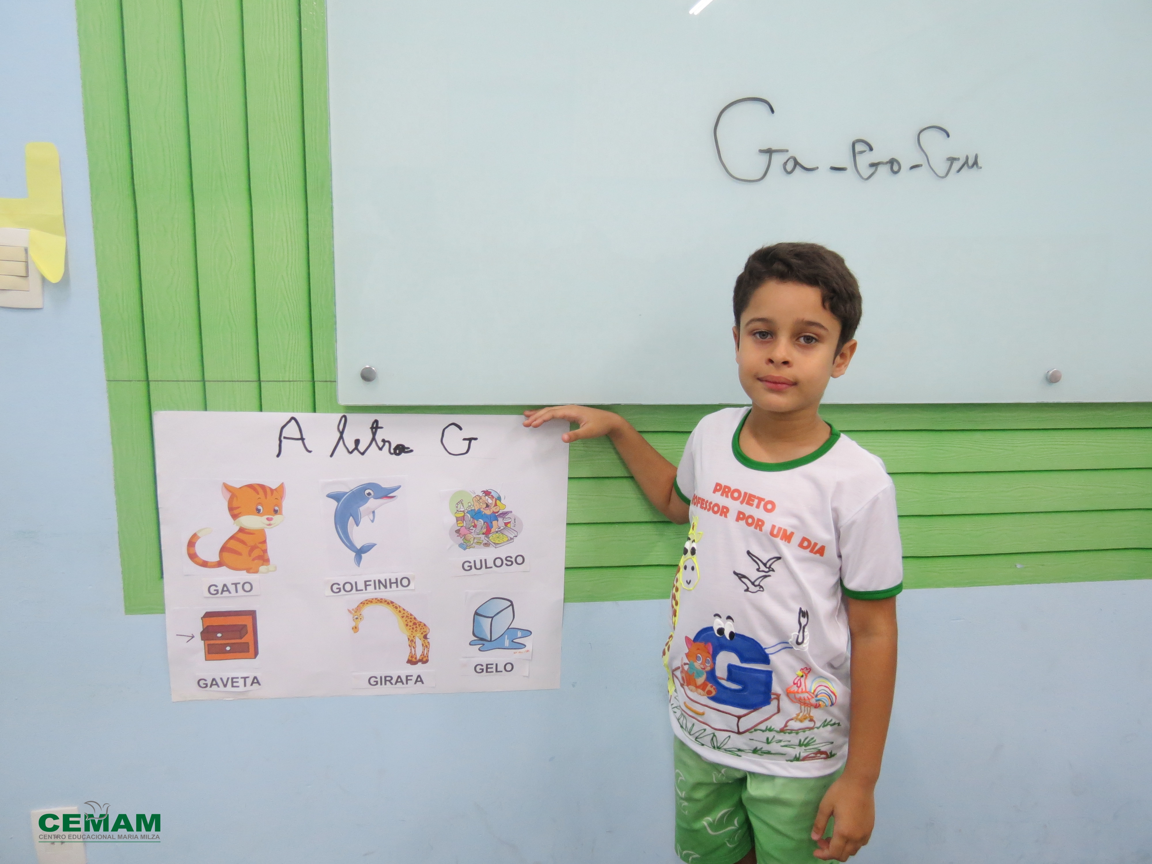 Para colher bons frutos no processo de alfabetização é importante tornar esse período como uma fase de alegria, fantasias e realizações. Deixar que os estudantes brinquem, façam jogos de faz-de-conta, fantasiem, desenvolve a capacidade de simbolizar, de buscar e de querer aprender. Por isso, o 1º ano está realizando o projeto “Professor Por Um Dia”, momento significativo que a criança imagina-se como um professor, realizando por alguns instantes o sonho de ter o domínio e o conhecimento sobre os demais colegas.