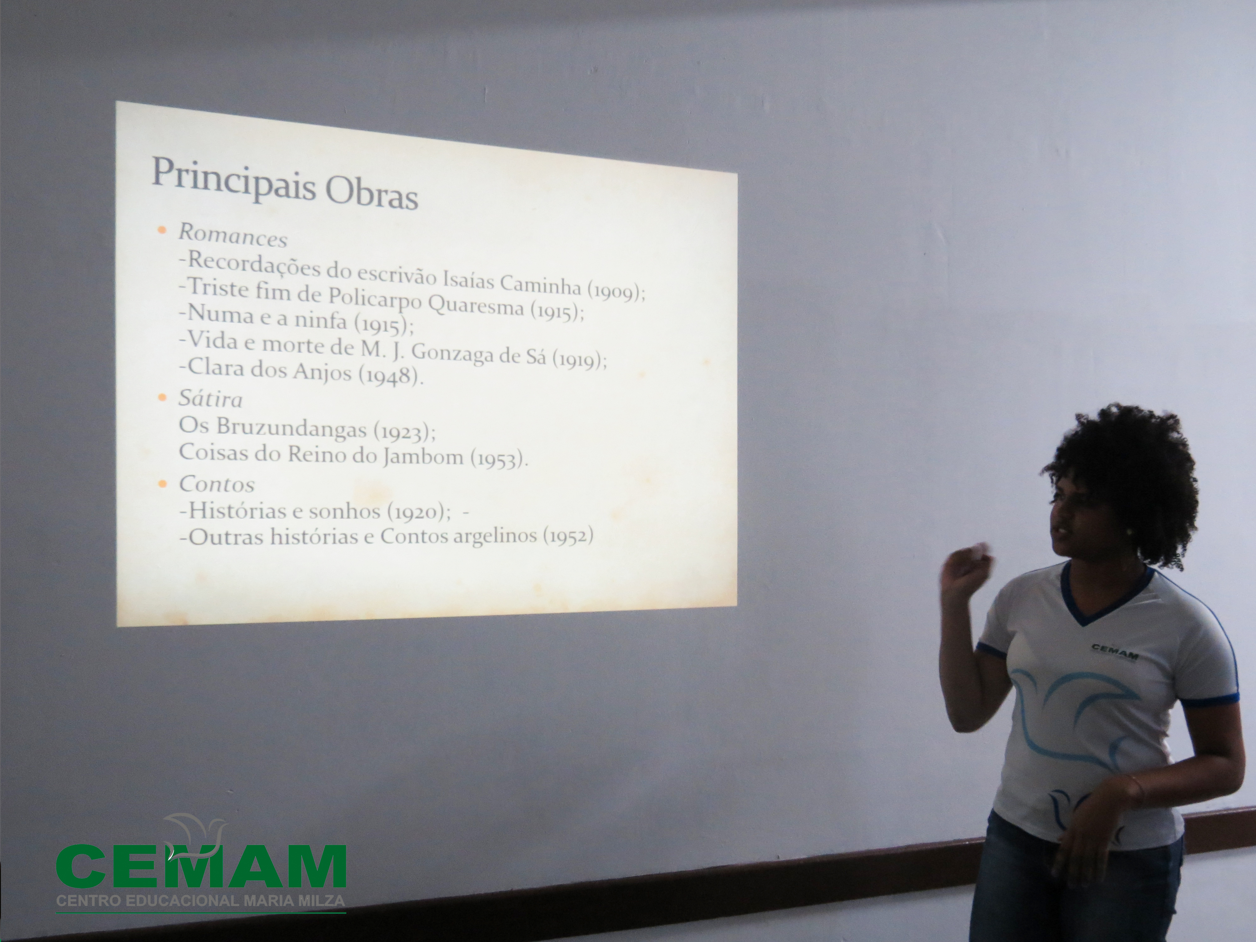 Apresentação do Seminário da turma do 2º ano do Ensino Médio sobre o Pré-Modernismo: Monteiro Lobato e Lima Barreto.